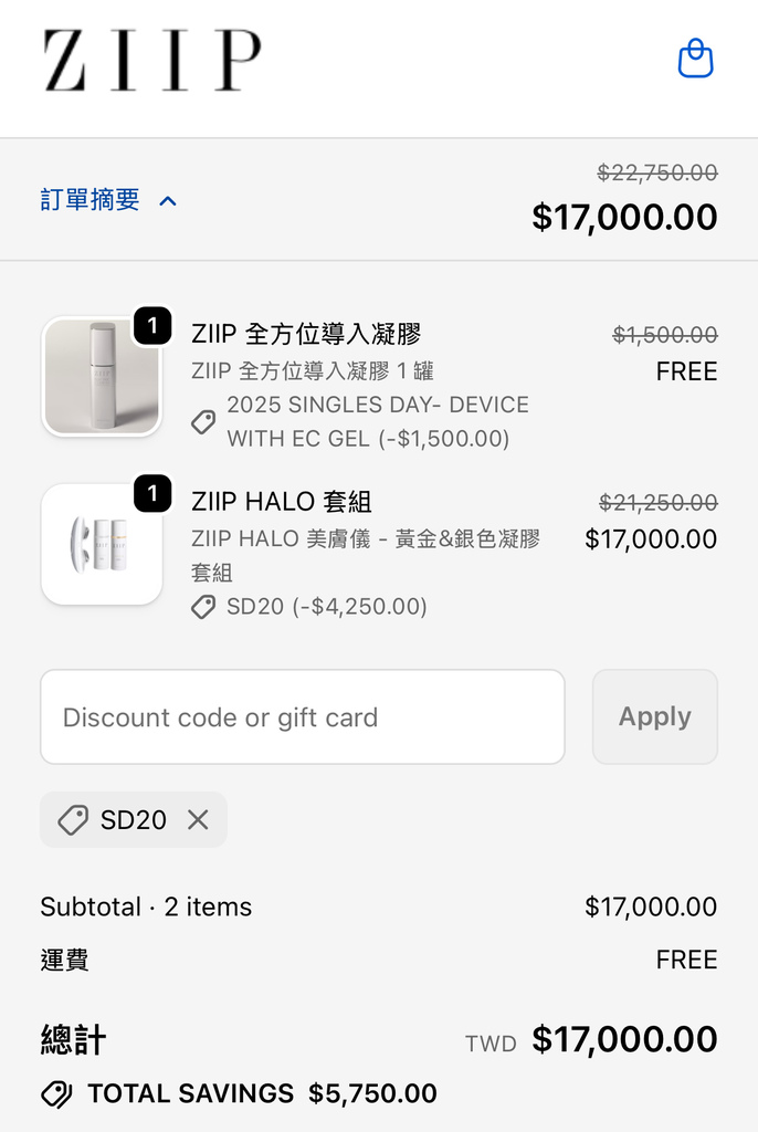 ZIIP HALO及套組額外8折碼【SD20】,再加贈品價值$1500的全方位凝膠(限量),換算起來折扣力度低至68折!僅限官網下單才有,贈品數量有限,送完為止~11/12 23:59結束